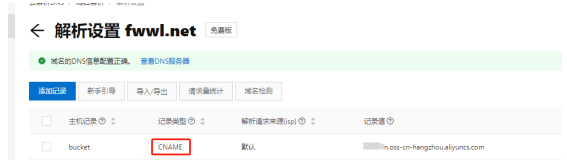 假設OOS存在與域名不在同一個賬號,則需要解析域名,需要添加的解析記錄如下圖所示: