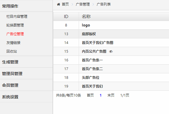 6.1?對(duì)相對(duì)固定的內(nèi)容進(jìn)行添加修改,如頭部底部logo、頭部底部電話、底部版權(quán)信息、底部二維碼、首頁(yè)廣告條 內(nèi)頁(yè)固定廣告圖、內(nèi)頁(yè)左側(cè)或右側(cè)聯(lián)系方式等等(如下圖)