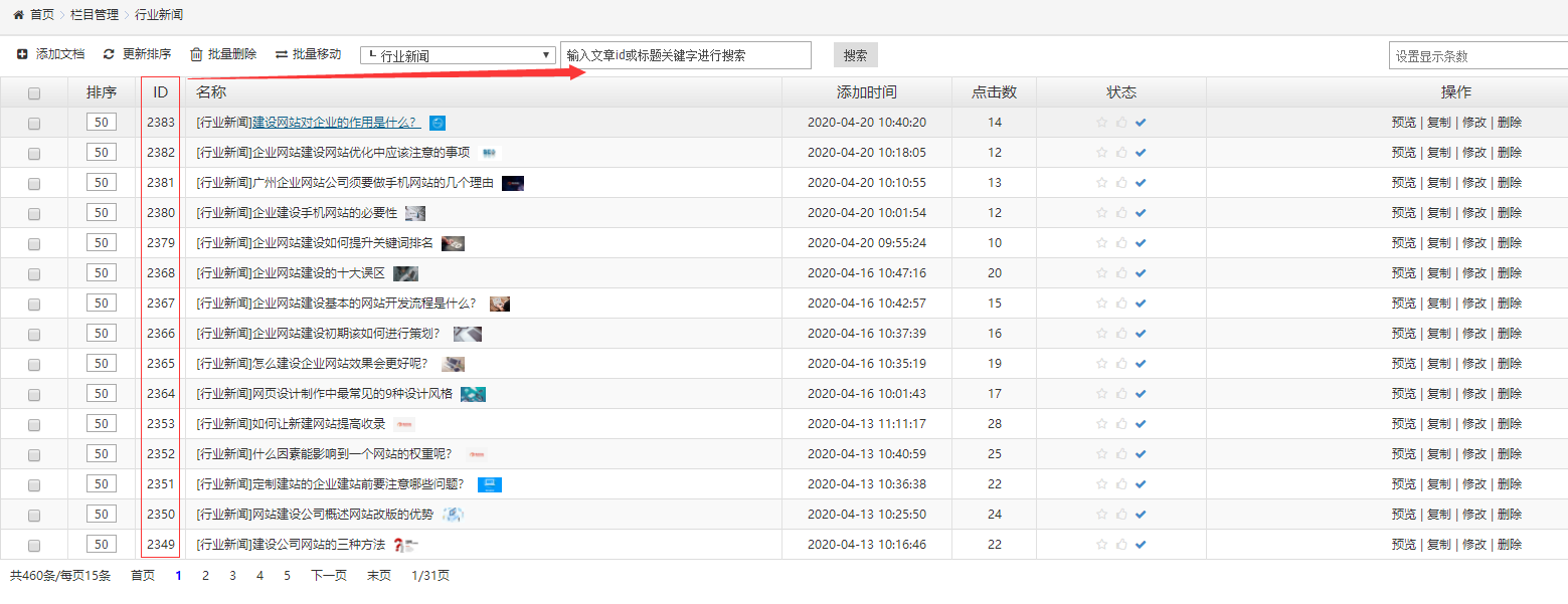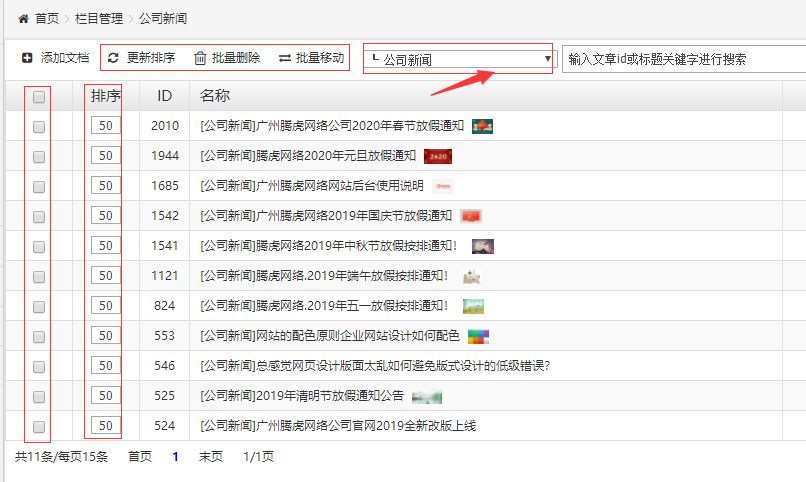 2.5 批量移動(dòng)、更新排序、批量刪除界面說(shuō)明