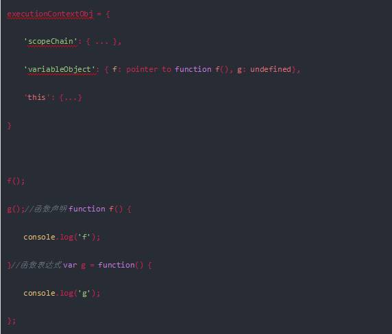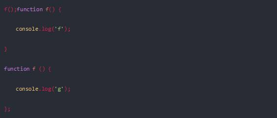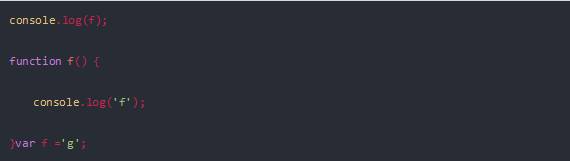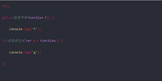 我們看到,在預解釋階段函數聲明的f是被指向了正確的函數得以執行,而函數表達式g被賦予undefined,undefined無法被當作函數執行因此報錯g is not a function.